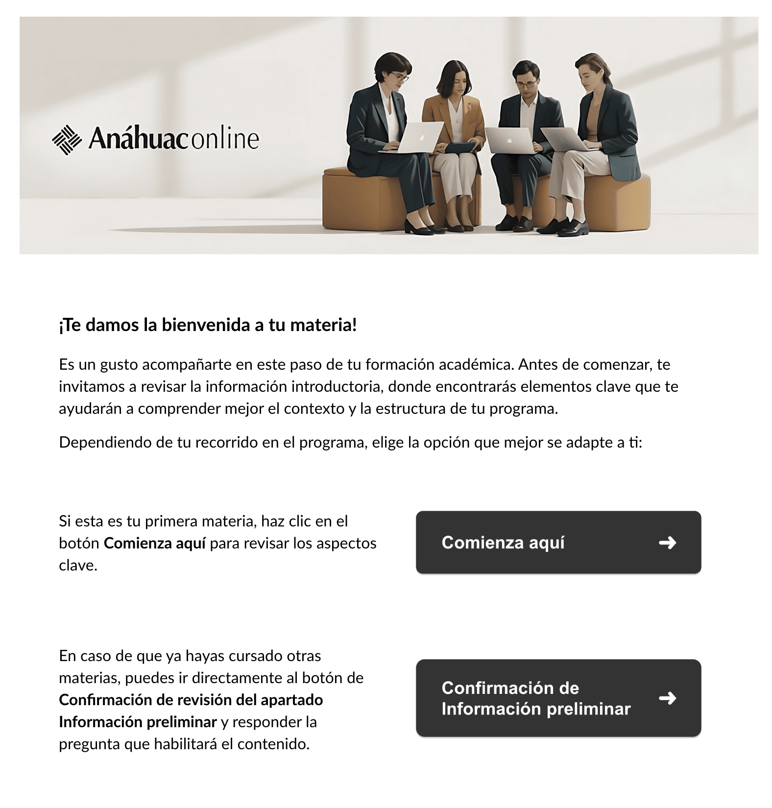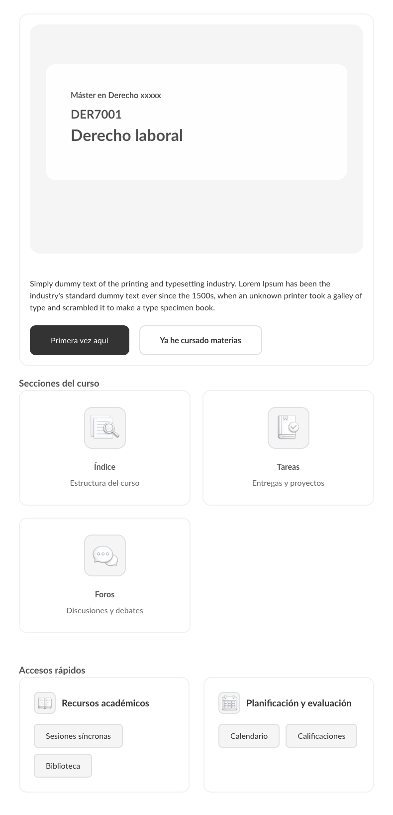 La experiencia inicial del alumno presentaba inconsistencias visuales entre materias, navegación poco clara y falta de un sistema modular reutilizable, lo que generaba una experiencia fragmentada dentro del LMS. El objetivo fue diseñar un sistema de portadas estructurado y escalable que mejorara la navegación, brindara claridad desde el primer acceso y garantizara consistencia visual entre los cursos.
