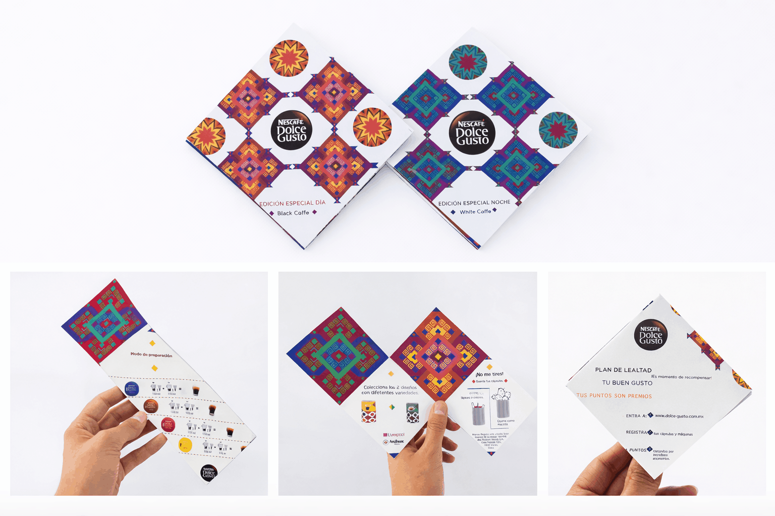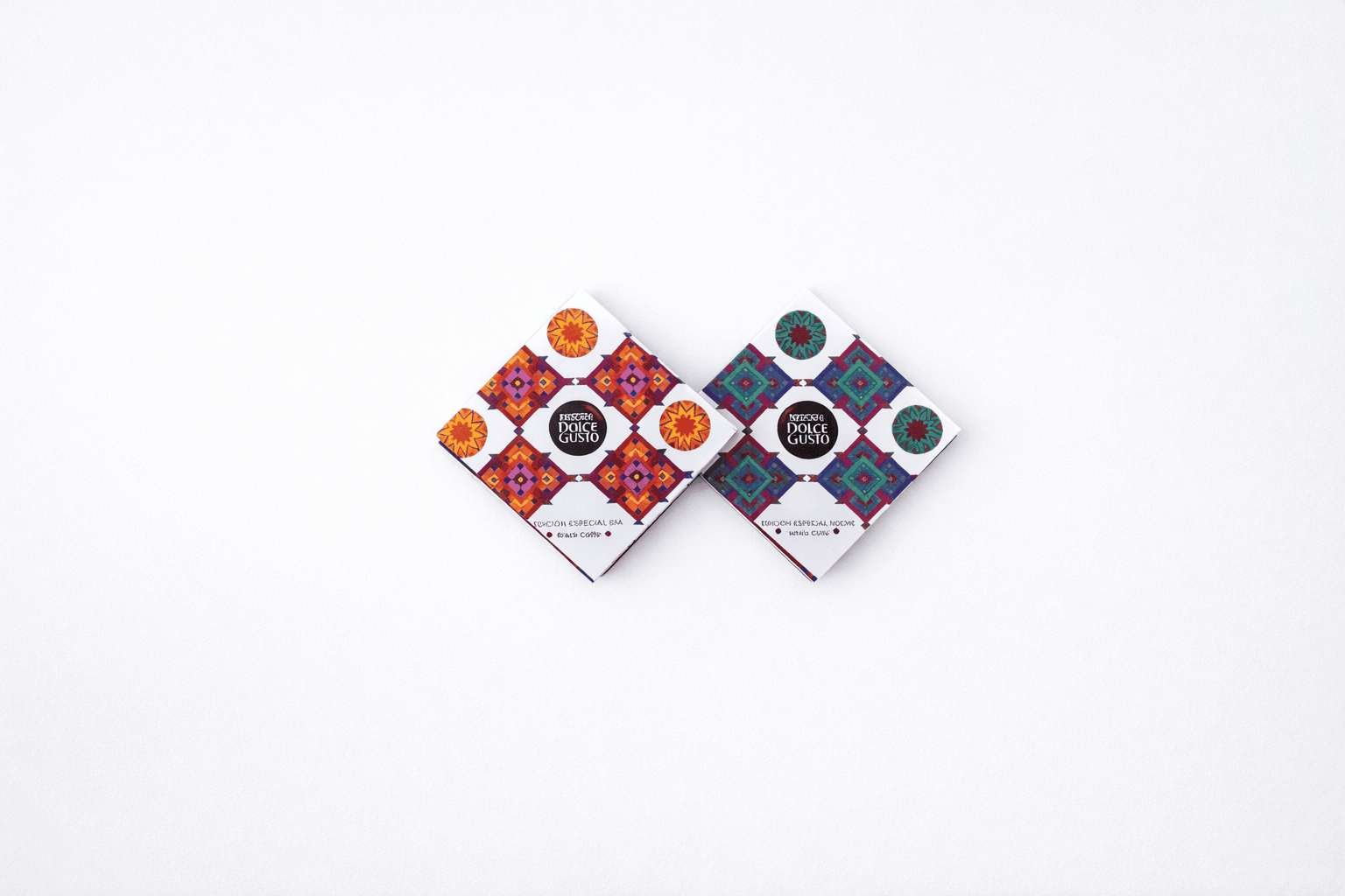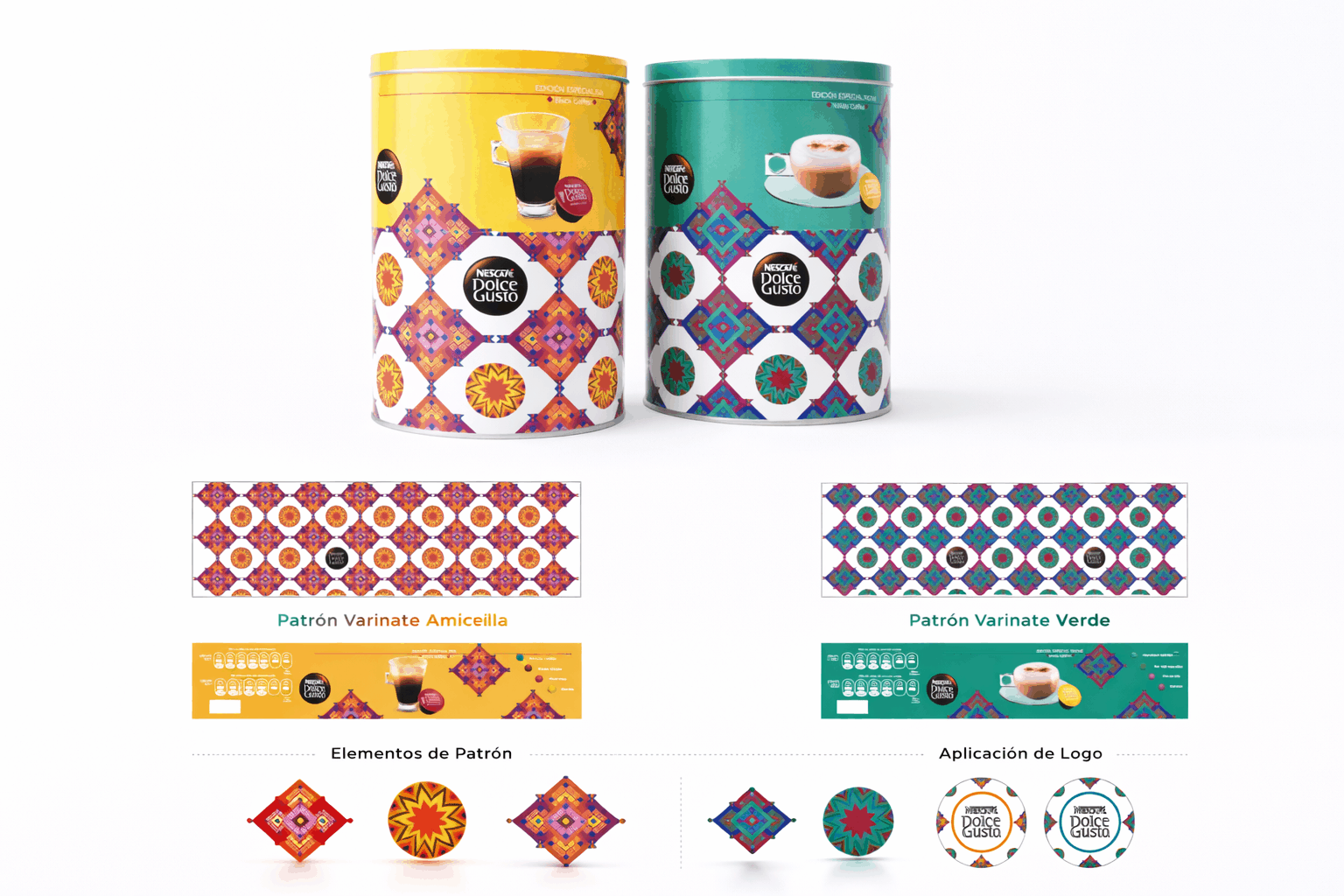 El resultado fue un empaque vibrante y coherente que integra patrones culturales, alto contraste cromático y una estética premium que fortalece la presencia de la marca en el punto de venta.