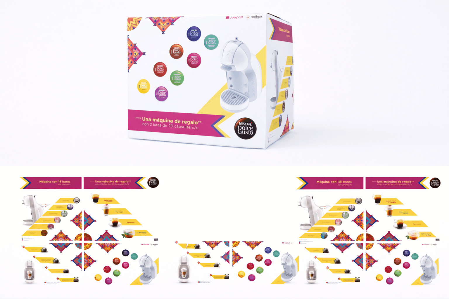 Este proyecto consistió en el rediseño del empaque de Dolce Gusto con el objetivo de incrementar su visibilidad en punto de venta y reforzar su posicionamiento como marca premium.